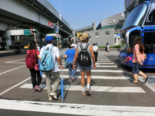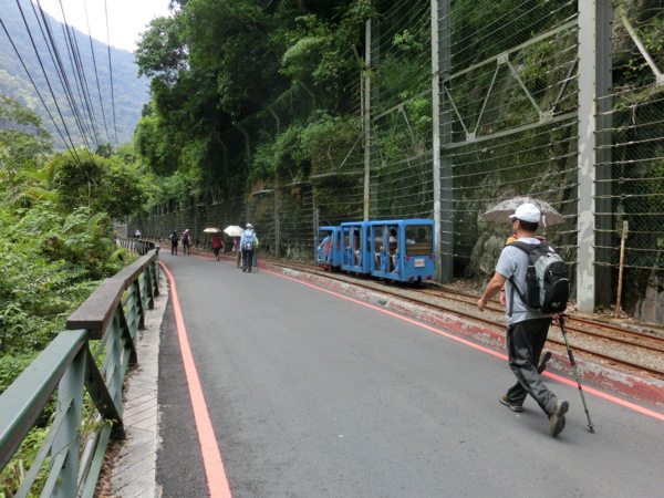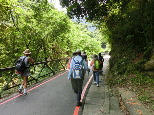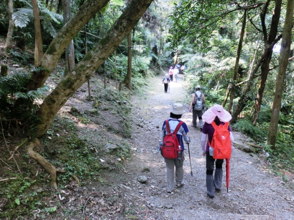 12:18 領隊穿著拖鞋帶傷上陣,出發開始健行