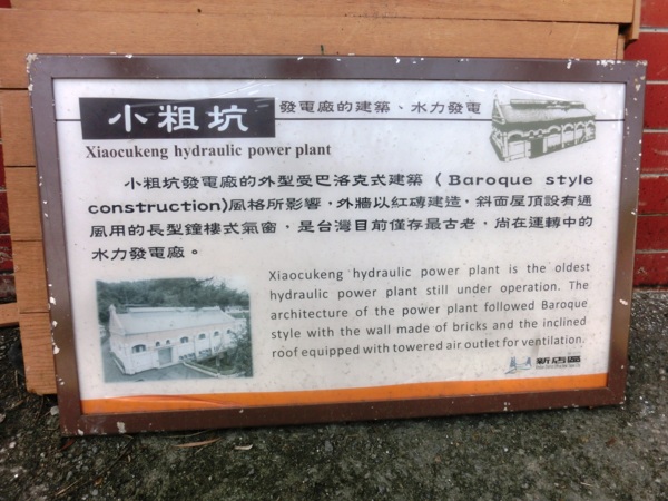1905年,台灣第一座水力發電廠「龜山發電所」誕生,奠定台灣現代化的基礎,用電需求激增。配合電力需求,1907年5月,台灣總督府開始進行小粗坑水力發電所的建設,發電所位於台北州文山郡新店莊直潭字小粗坑,龜山發電所下游之屈尺,1909年8月5日竣工。小粗坑水力發電所當年主要供應基隆市電燈、基隆築港、瑞芳金瓜石牡丹坑、台北市水道及台北市電燈等地區電力。