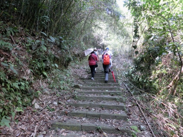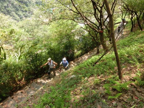 在此兵分二路,健腳者繼續往上走到保慶宮,另一路走櫻花步道下山,本想隨健腳組上攻,走沒幾步,腳浮氣虛,心想出來玩不必那麼操,改隨老弱組遊山