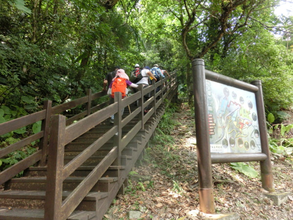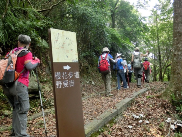 13:22 櫻花步道入口(在此兵分二路,健腳者繼續往上走到保慶宮,另一路走櫻花步道下山,本想隨健腳組上攻,走沒幾步,腳浮氣虛,心想出來玩不必那麼操,改隨老弱組遊山)