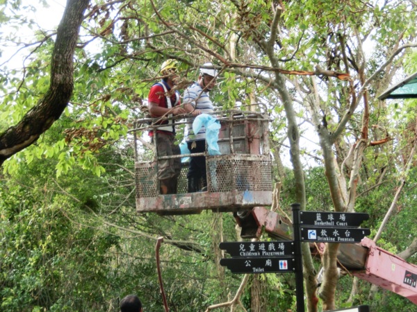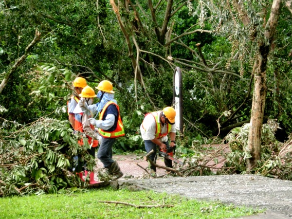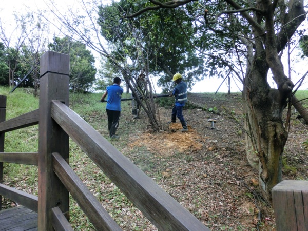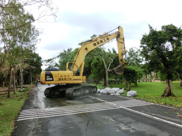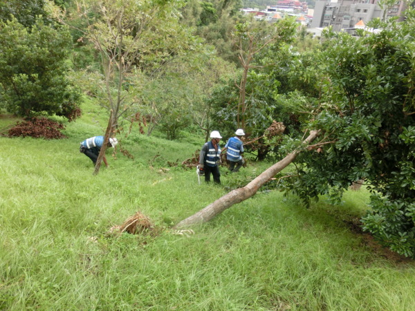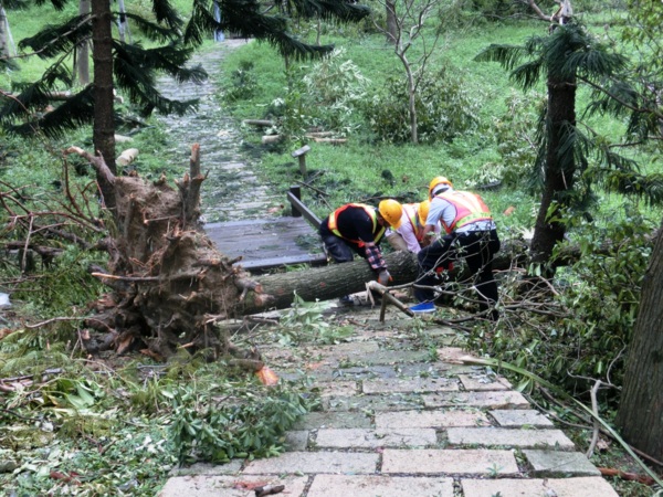 辛苦的公園處員工正在移除倒木