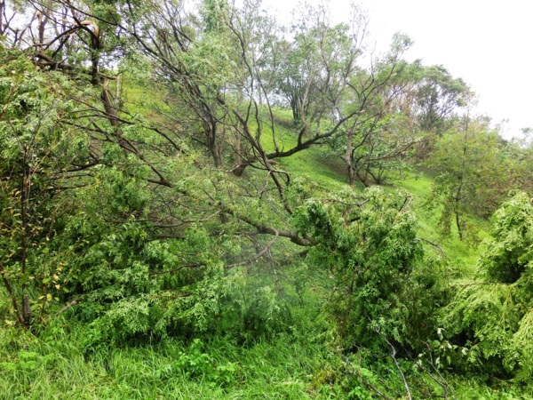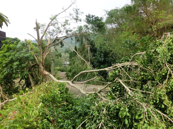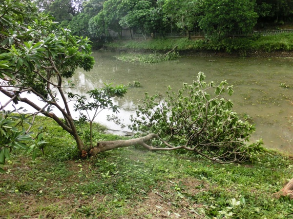 五色鳥棲息的黑板樹也被吹歪了