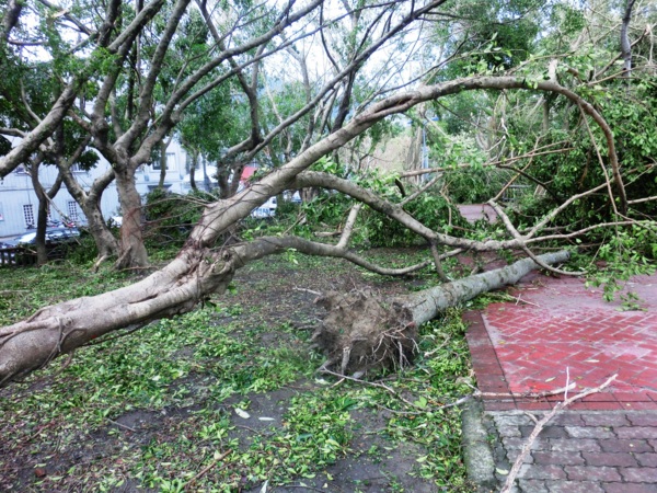 公園倒木大抵處理完成,這株山櫻被連根拔起,宣告沒救