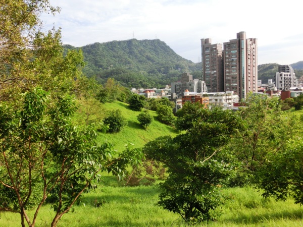 從後山埤公園遠眺五指山忠靈殿