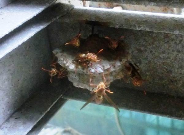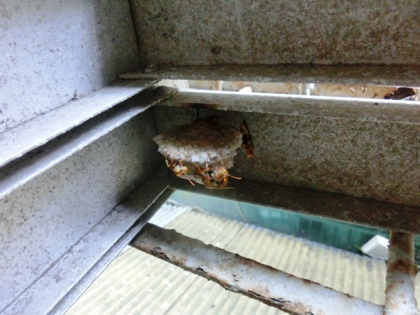 家長腳蜂築巢於鋁梯上