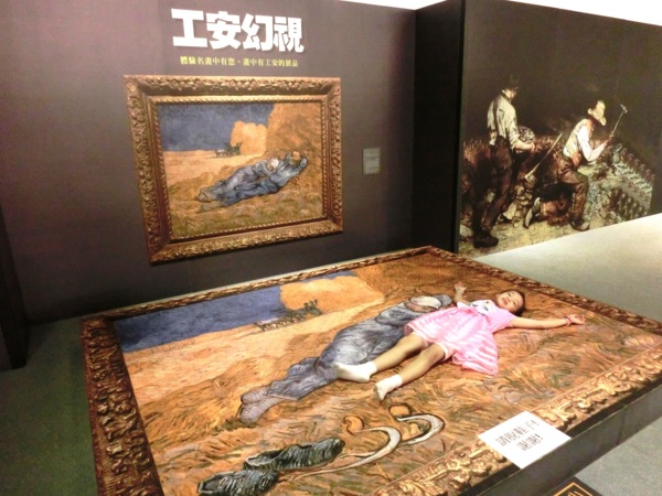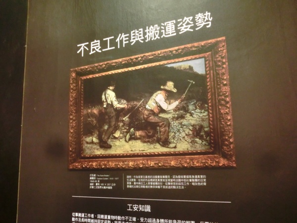 「工安幻視」的藝術體驗展示,是藉由視覺的幻覺與錯覺,讓觀眾彷彿融入藝術品中,梵谷《午睡》畫中的農夫可能透露了社會心理性危害,庫爾貝名作《打石者》中看出人因工程性危害,維梅爾「天文學家」畫作照明重要性的,瞭解工作現場可能會遭遇到的職業傷害與預防方法。