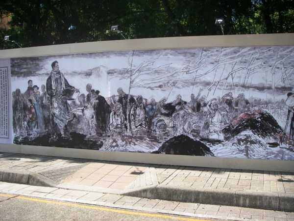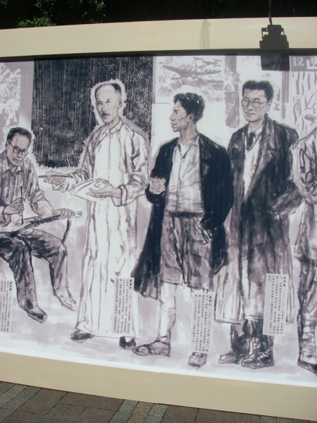 七七抗戰將屆七十三周年,兩岸紀念抗日團體首度合作,展出五十位大陸畫家費時五年半完成的抗日巨畫,創下最長畫卷紀錄。巨畫捐棄成見,還原歷史,追思中華民國百年來最悲壯慘烈的一頁歷史,並將戰爭勝利歸功「國軍」,推崇故總統蔣介石功不可沒,在兩岸交流史上意義重大。