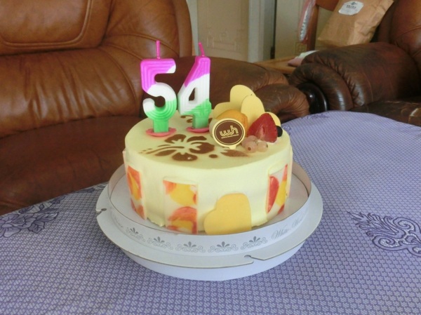 昨天去白木屋領回銀行贈送的貴賓生日禮,6吋蛋糕一個,價值720元,今天陪老媽去忠孝醫院心臟外科門診回家後,就把蛋糕拿出冰箱來慶生。