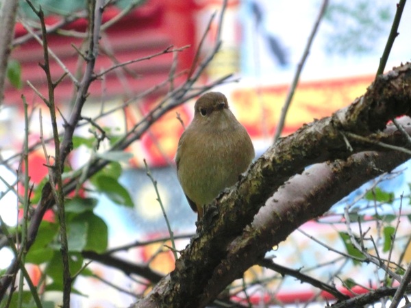 南港公園梅樹上的黃尾鴝(雌)