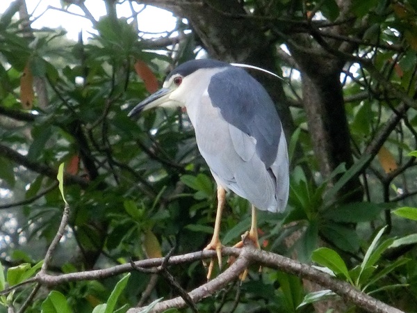 夜鷺成鳥頭部長出了繁殖羽,虹膜變紅