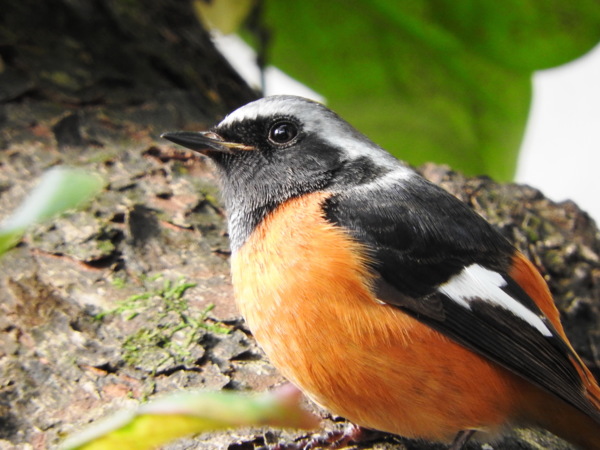 公鳥頭頂至後頸銀灰色,臉至喉、背、翼及中央尾羽黑色至深褐色,翼有寬白斑,腹面胸以下橙黃色;母鳥大致呈褐色,白色翼斑較小。區別於其他紅尾鴝,北紅尾鴝雌雄均具有顯著的白色倒三角形的翼斑。