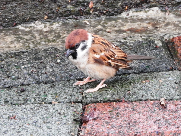 人們常將這個物種與體型稍大的家麻雀混淆。但這種麻雀的褐色較深、頭部呈銅色、白色面頰上有黑的色塊。