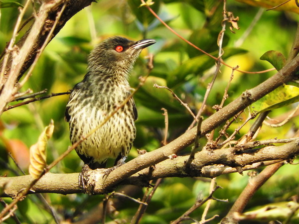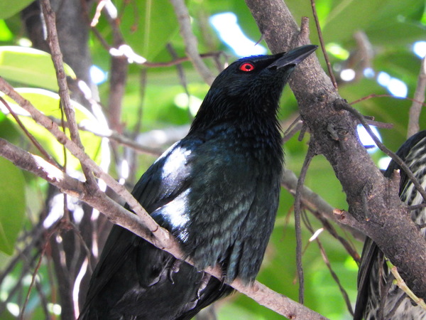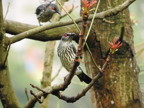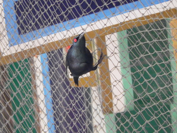 成鳥體長大約有17至20公分,雄、雌鳥的外形類似,全身深黑綠色,閃耀綠色金屬光澤,最大特徵為火紅色眼睛,對比強烈目露兇光。亞成鳥則為黑棕色的背部,淺黃和棕色條紋的腹部。非台灣原有鳥類,原產於南洋菲律賓群島,又稱亞洲輝椋鳥或稱菲律賓輝椋鳥。被引進台灣當作寵物,根據資料最早在1978年臺北市郊外發現輝椋鳥蹤跡,也許是從籠中逃逸或被棄養,因適應環境能力強,目前從北到南都有牠們活動和繁殖的紀錄,其族群已在台灣擴散,然而就像八哥一樣,目前似乎也沒有任何有效的管理作業能控制本種鳥類的擴展。