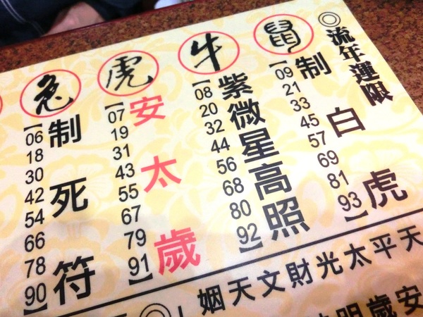 早期「安太歲」相當簡易,要「安太歲」的信徒,多於春節前後,以紅、黃色紙書上「本年太歲星君到此」或「本年太歲星君神位」或「一心敬奉太歲星君」之類字樣,貼在家中,晨昏焚香禮禱。年底送神日時,祭拜一番,將太歲紙條撕下,與紙錢、紙馬一同焚化,「送神上天」。儀式繁複化以後,簡便的紙條也演變出各種專門的太歲符咒、牌位甚至神像。此時此刻臺北市行天宮發放的太歲符仍保有傳統的簡樸風格,符上只有年份與神祇名諱字樣,並無「鎮宅」等吉祥話。如:「甲子值年太歲金辨星君神位」。
