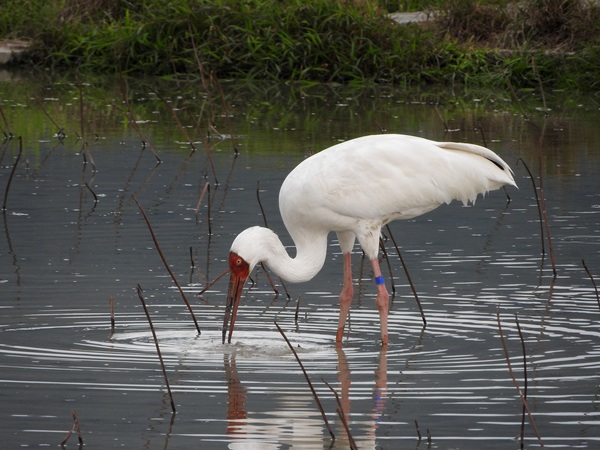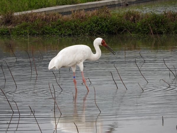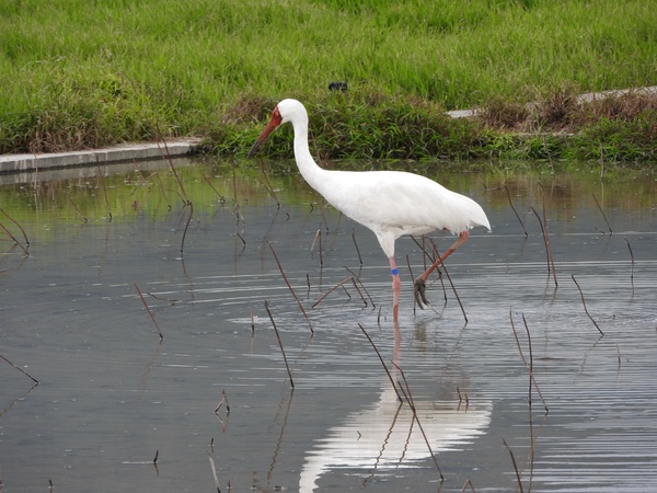 2014年12月,臺灣彭佳嶼發現黃白相間的大鳥,為白鶴到台灣的首次紀錄。白鶴於三日後抵達臺灣本島,至2016年2月為止,白鶴仍停留在臺灣新北市金山清水濕地。