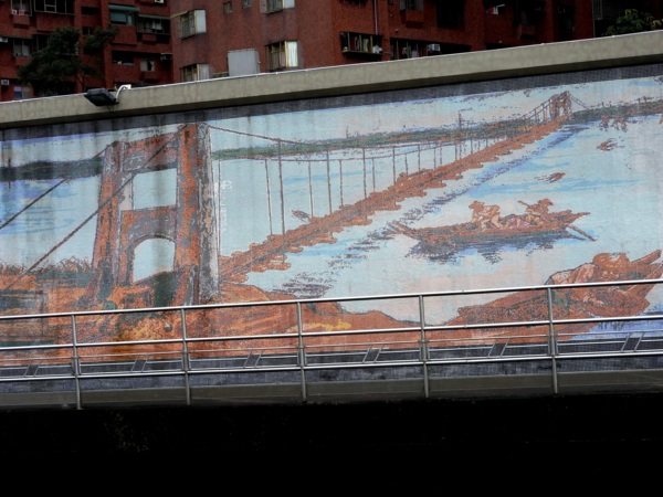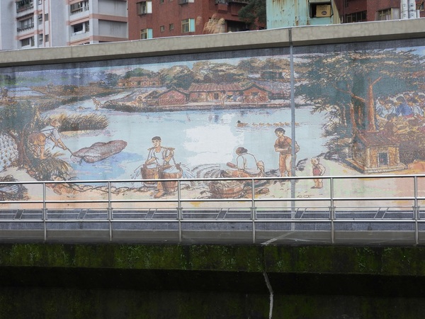 「現代版」清明上河圖現身!北市內湖社區大學和東湖國中、康寧護專合作,花了近1年時間,製作長30公尺、寬0.6公尺的「五份上溪圖」,描繪東湖一帶四季的場景,運煤礦、五份吊橋的場景都栩栩如生,年底前將作成馬賽克磁磚呈現在大溝溪沿岸。