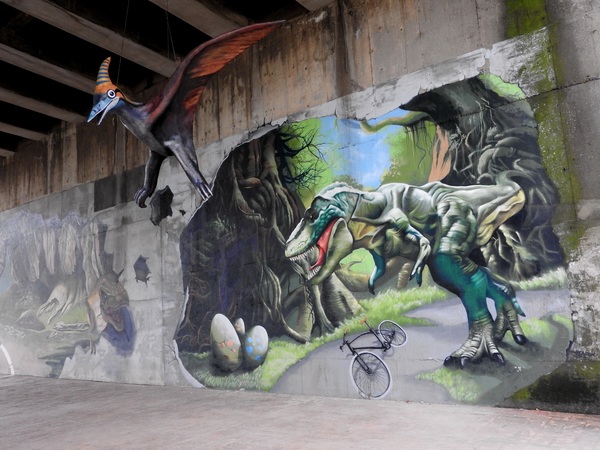 14:50 中和華中橋下「恐龍主題彩繪牆」