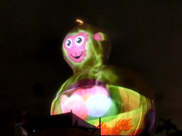 葫蘆稱為“福祿”,又有結子多藤蔓的特點,傳統文化中猴子和桃子攀附在大葫蘆上,在是“子孫萬代” “福壽綿長”的吉祥含義。整體創意突破了傳統猴子單一造型,創新簡約的輪廓結合傳統文化精髓,生肖猴與葫蘆結合成為今年主燈渾厚圓滿的造型,以環保概念的回收氣泡膜做為本年主燈材料,以回收保麗龍包裝材料透過美學與色彩堆砌成鳥瞰的臺北市地景縮影。科技光雕投影豐富的內容,將傳統的光采與科技光影結合得唯妙唯肖,傳統風貌、聲光科技、環保理念、視覺藝術相融合的創作,藉此祝願臺北與所有臺灣民眾納福聚寶,萬代安康。