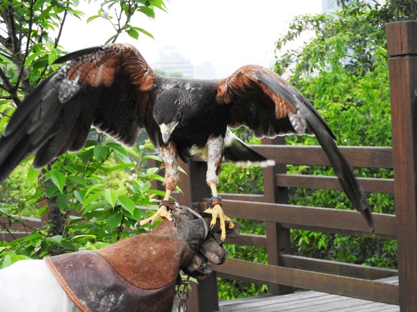 野生的栗翅鷹數量因失去棲息地而減少,有些甚至遷居到已發展的地區。