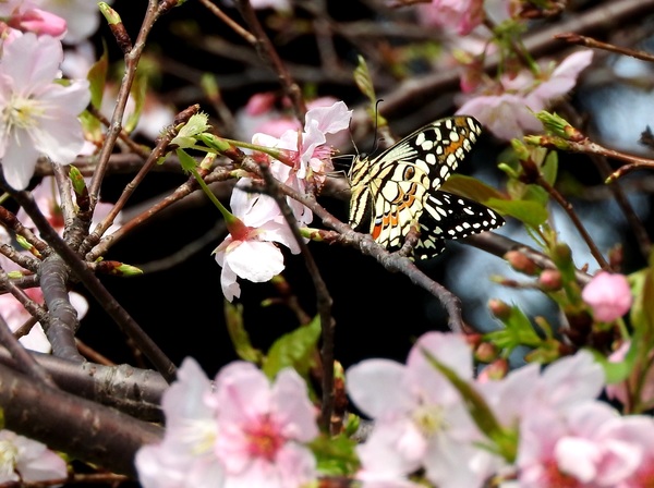 大漁櫻上的無尾鳳蝶