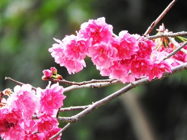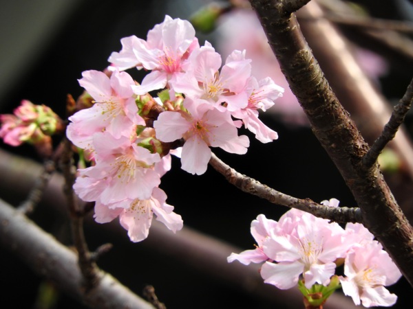 | 原樹種在日本伊豆的修善寺境內。花期早,較「染井吉野」早開,花色較寒櫻濃。推測為與「台灣緋寒櫻」交配而來。樹高8~10m,樹幹筆直,樹姿呈廣卵形,葉色濃綠,葉背略帶白色。為單瓣花,花瓣5枚,花朵呈中型大小,果實呈黑紫色。本種種植於環堂道路靠近大孝門側,花期為每年2~3月。 |