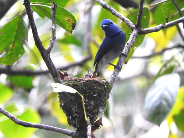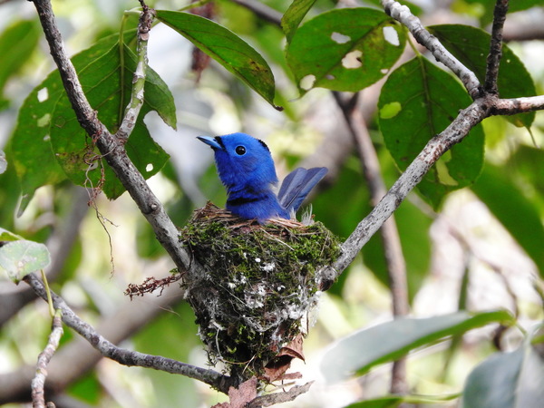 黑枕藍鶲(染布鳥)全長十五公分為台灣特有亞種。