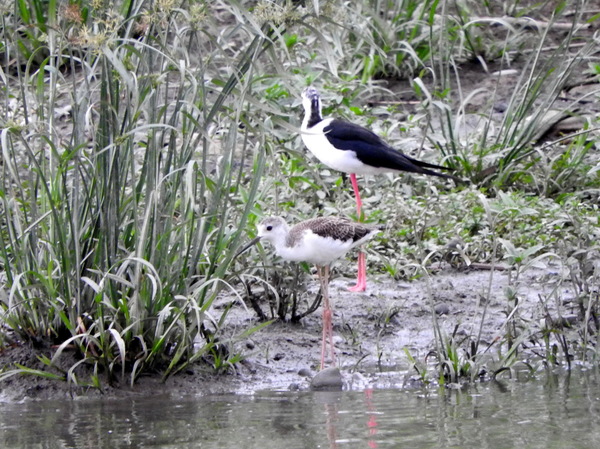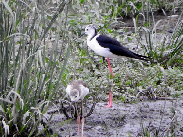 高蹺鴴(Himantopus himantopus),嘴黑色細長,筆直或微微的上翹。虹膜紅色。腳長,深粉紅色。