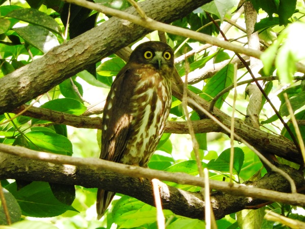 褐鷹鴞是鷹鴞屬的小型貓頭鷹,是不太像貓頭鷹的貓頭鷹,牠外型比較近似日猛禽,飛行的姿態加上飛羽、尾羽的橫紋,飛起來頗有鷹屬猛禽的氣質。褐鷹鴞飛行技巧極佳,擅長捕捉飛行中的獵物,如蝙蝠、燕子及飛蟲等,在山區有機會可觀察到褐鷹鴞埋伏在路燈附近,並伺機捕捉被路燈吸引而來的昆蟲們。