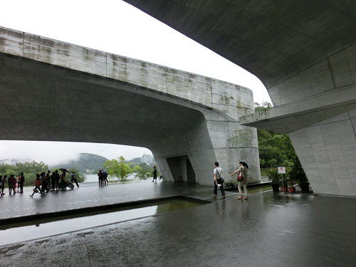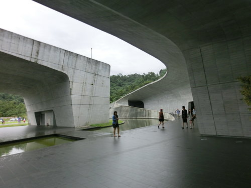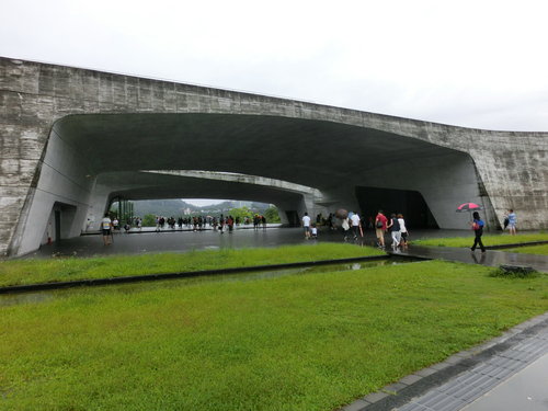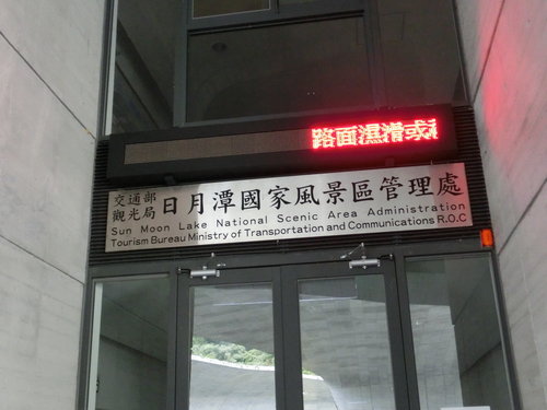 向山行政暨遊客中心位處臺21線水社隧道附近,鳥瞰建築物,猶如雙手環抱整個日月潭的湖光山色,其中兩個長度達34公尺、高8公尺的超大跨度之頂版結構;日月潭的湖光山色穿過寬闊的跨距空間,直接映入遊客眼中,創造了人與自然間發展對話的舞台,雖為建築物,但若說它是一件藝術品也不為過。