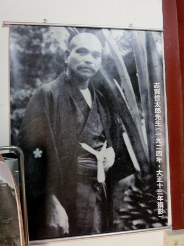 1896年12月,志賀哲太郎來臺灣。初期他先到臺北,但人生不順。1899年,藉由安達謙藏向苗栗廳廳長家永恭吉郎推薦為大甲公學校(今大甲國民小學)代用教員。