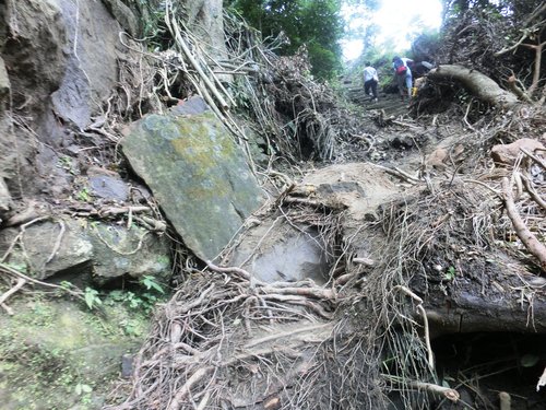 11:39 跨過大石壁上方步道坍方處 (因蘇力颱風肆虐尚未清理完成)