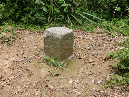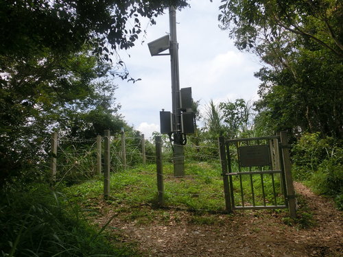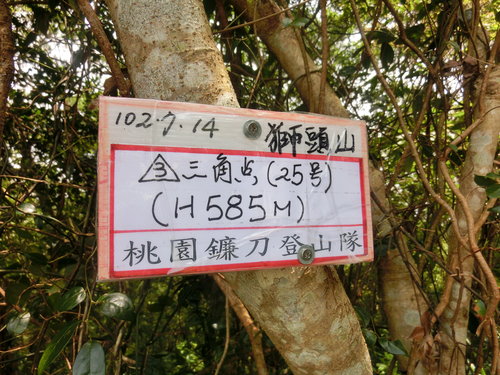 11:56 鑽過倒木,撥開障枝,抵獅頭山三角點(海拔491公尺)