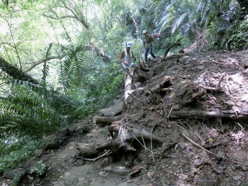 11:39 跨過大石壁上方步道坍方處(因蘇力颱風肆虐尚未清理完成)