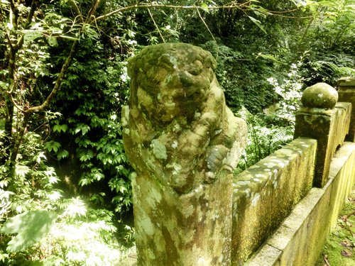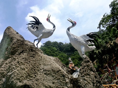 到此驚看造化奇,隔溪龍虎控雄獅,洞中可拓經靈境,朵朵慈雲法語垂