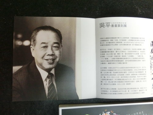 中華文化總會為突顯臺灣中華文化之創新風貌,特邀請臺灣當代創作有成之書畫藝術家,舉辦「巨椽」系列邀請展,以彰顯藝術家的畢生成就與傳承之功,並向藝術家致上最高敬意。2013年5月18日(六)至7月21日(日),特別邀請吳平先生舉辦「吉祥多寶既壽永康-吳平書畫篆刻展」。