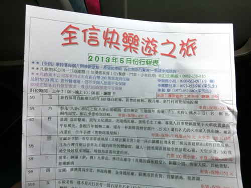 07:55 等不到去彰化菁芳園的車子,便胡亂跳上全信旅遊遊覽車(原訂去宜蘭香草菲菲費用:車資300元+便當60元)