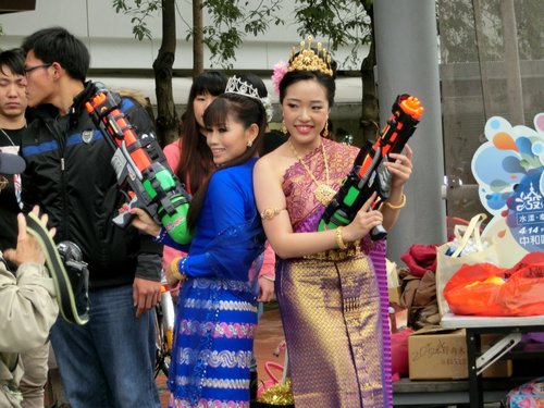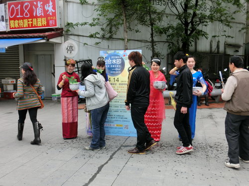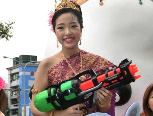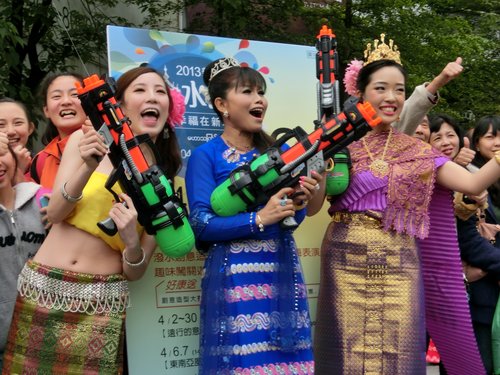 四月十三日是傣曆的新年,泰緬等國會一連三天舉行「宋干節」,宋干是梵文,意指「跨越」或「向前邁進」的意思。每到宋干節,泰國人除了會虔誠膜拜宋干女神之外,大家更會相互潑水,洗去過去一年的不順利,新年重新出發,所以又稱潑水節。