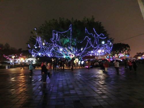 18:50 蛇斑斑劇場前細雨中眺望表演