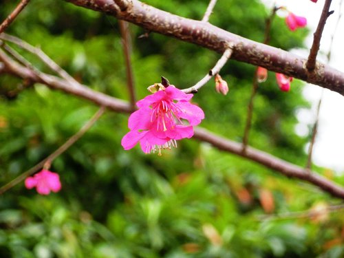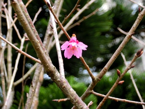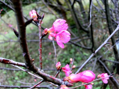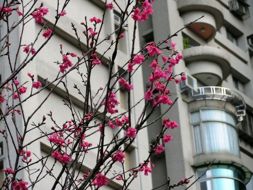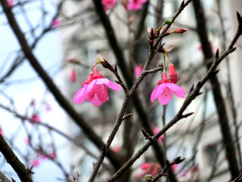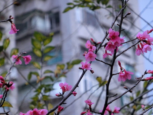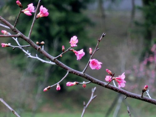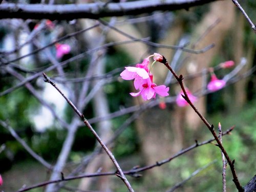 有數株櫻花已綻放
