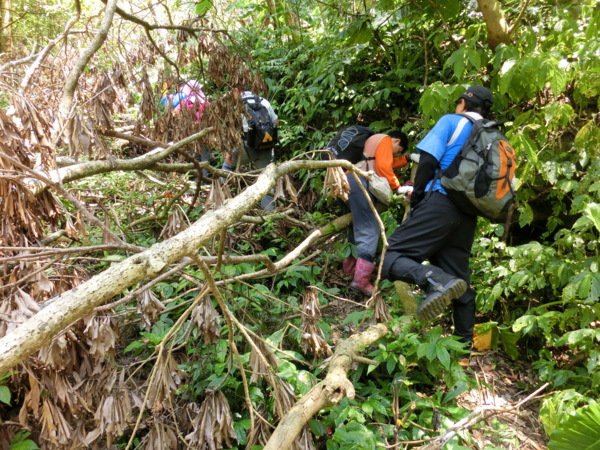 13:12 等山友到齊後(山友得知還要再去一趟三角點,有些抱怨),O型叉路口取右出發