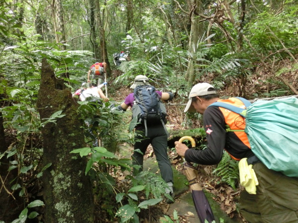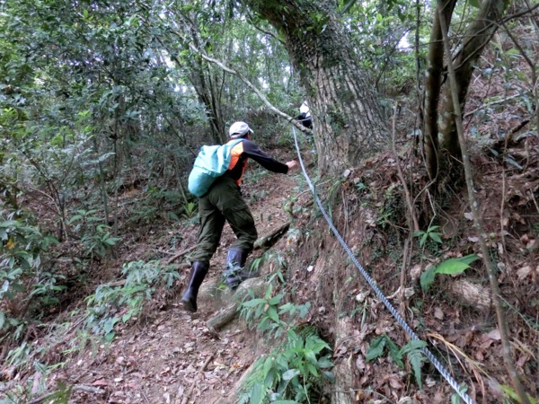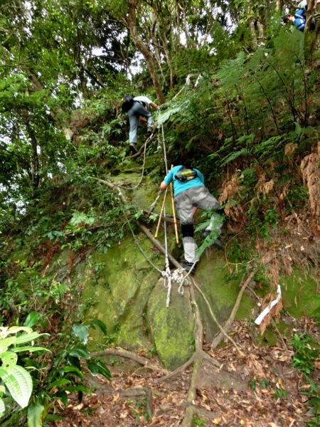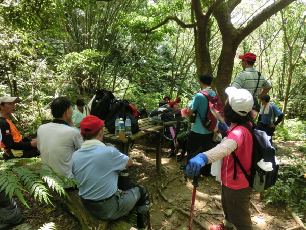 12:43 金面山三角點下方約15分鐘路程的O型叉路口(領隊以為取左只能上到高處觀景平台,請想上去賞景的山友自行上去,30分鐘來回)