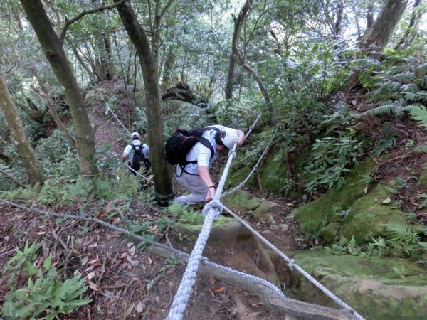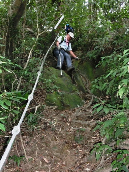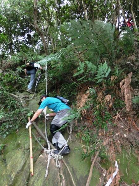 14:09 攀繩下兩層樓高的陡直岩壁