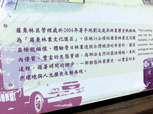 羅東林業化園區原為羅東出張所,為太平山林場之製材作業、貯木場、營林辦公廳與職員宿舍,園區內完整保存林業設施、聚落、貯木作業設施、載運機具等,為太平山林業發展之活歷史。藉由太平山林場的發展,奠定日後羅東木材都市與宜蘭工商中心之基礎。