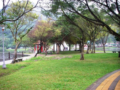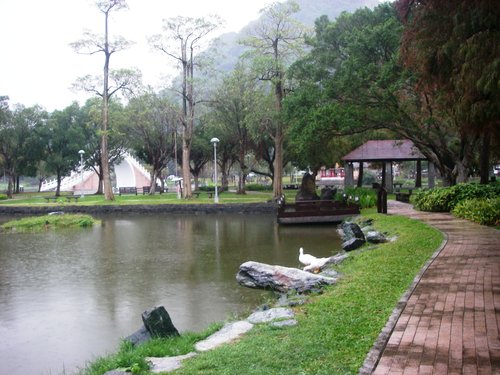 民國六十八年六月完成的成功路五段道路和公園設施,係填湖造路方式興建;因此,湖面縮減,生態遭到破壞。湖面南緣,今殘存一小段舊有的輕便鐵路路徑遺跡與 「老公祠」內的主角-乞丐老公為水圳工程順利完成而獻身活埋悲淒的口傳故事。園內設有歌台水榭、錦帶橋(拱橋)、游泳池及各種休閒活動設施,風景秀麗;假日,是一處市民常到的名勝遊憩場所。