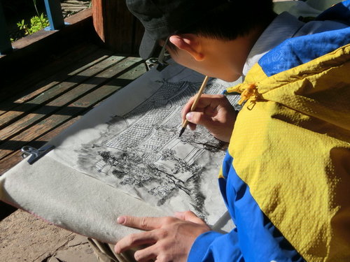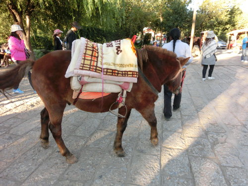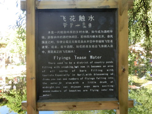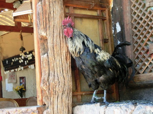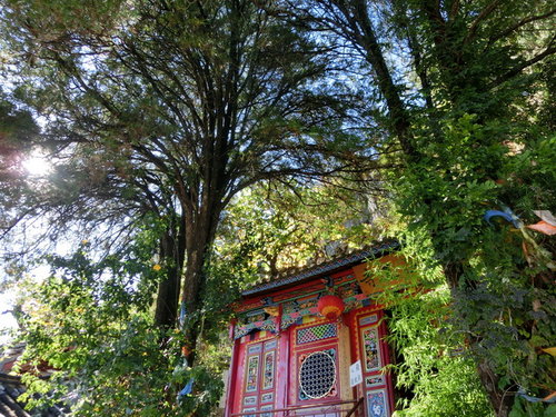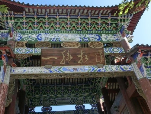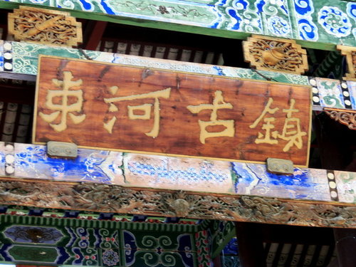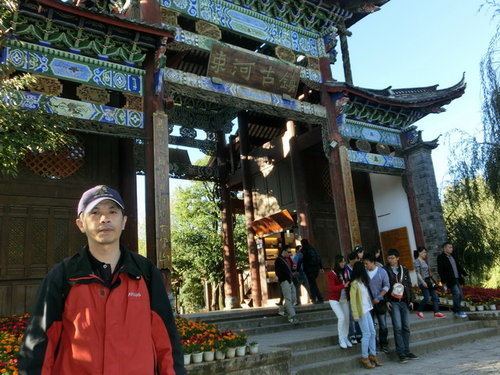 四方聽音廣場在束河古鎮的南面,門樓上的“四方聽音”四個字很大;“四方”兩字是雙關語,既引自於“四方街”,又是實意,四面八方、廣納百川。