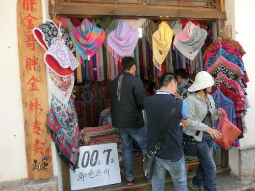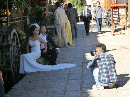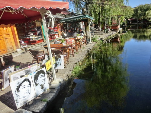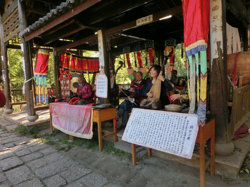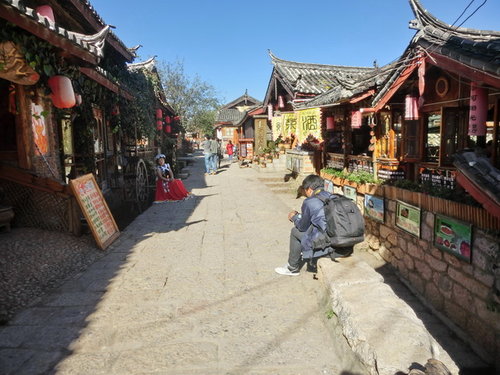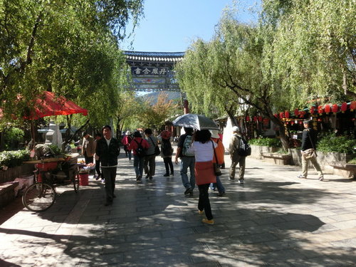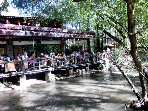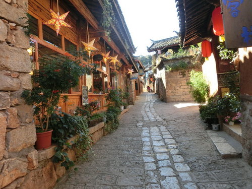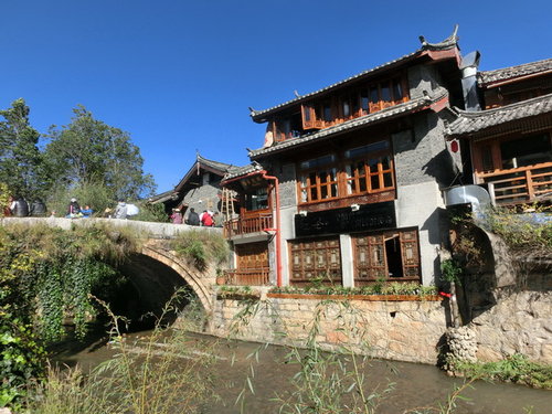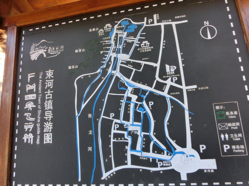束河,納西語稱「紹塢」,因村後聚寶山形如堆壘之高峰,以山名村,流傳變異而成,意為「高峰之下的村寨」。位於麗江古城以北,沿中濟海東側的大路行程約四公里,與白沙古鎮、大研古鎮共同組成麗江古城。