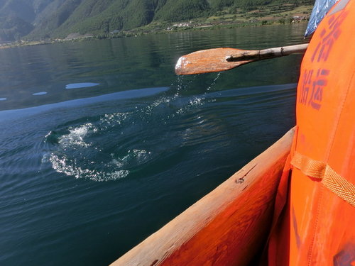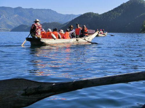 豬槽船即獨木舟。摩梭語稱:“日故”。由一根粗壯的圓木鏤空.兩頭削尖而成。因其狀如一隻長長的豬槽而得其名。瀘沽湖與世隔絕。湖中的唯一交通工具是摩梭人獨特的“豬槽船”。最先記載“豬槽船”的文獻是清代道光《鹽源縣誌》“夷民挎巨木中空,樺短以濟,曰:豬槽船”。