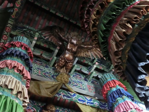 玉水緣是供奉納西族東巴教主要崇拜對象的殿堂,殿內供奉的神靈有:東巴什羅、崇仁利恩及其兩位妻子和三個兒子,三朵神及其兩位妻子、自然神及熊和蛙。