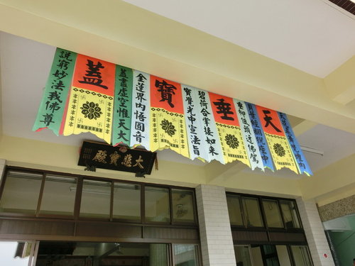 其一「普明佛法廣被恩四海,光照金經惟善感十方」、其二「普度眾生同登覺地,光明世界共出迷津」