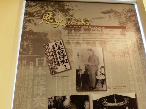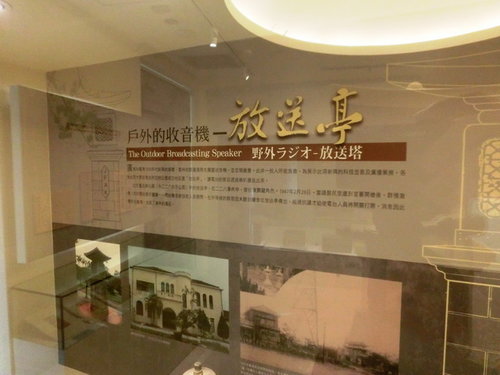 日治時期,1931年2月1日,臺灣放送協會成立,在臺北新公園(今二二八公園)設立辦公廳,開始以一台收音機每月日圓一元的收聽費播送廣播節目。當時臺灣有收音機的人不多,因此臺灣放送協會在新公園建了一座廣播塔,以提供免費播放。廣播塔是將音箱裝在水泥柱中,外觀乍看像一座紀念碑。因離電台發射塔近,聲效特別好,引來眾多聽眾,並以「放送頭」稱呼。其播送分為氣象、新聞、日用品價格等報導性節目,也有體操、家庭百科、新思想介紹等教育節目。李乾朗解說,當時這亭子可說是台北市民的精神食糧,每日都有許多聽眾圍在旁邊,聽播放整點新聞、歌星打歌,到1945年日本投降時昭和天皇玉音放送於台灣地區放送時也是使用此廣播塔傳播。